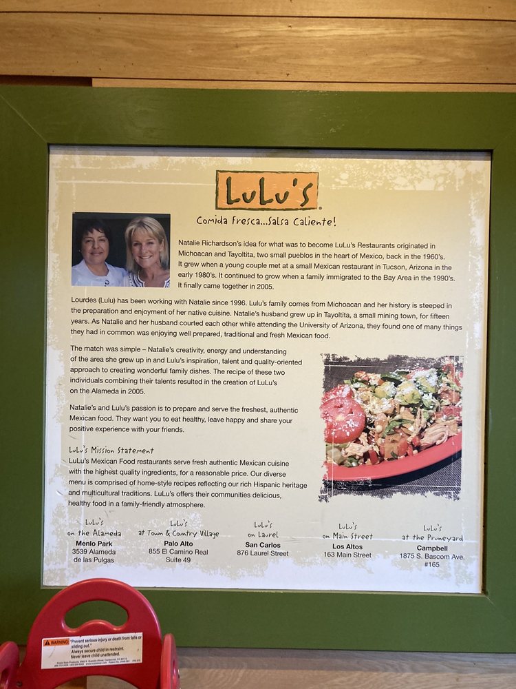 LuLu’s - Main St is a casual Mexican restaurant located at 163 Main St in Los Altos, CA. They offer a variety of vegan and vegetarian options, along with street parking, free Wi-Fi, and a full bar. Customers rave about the friendly staff, excellent service, and delicious food. The steak burrito, fresh ingredients, well-seasoned meat, and a perfect blend of flavors have left diners extremely satisfied. The ambiance is fabulous, with plenty of room for groups and a welcoming atmosphere. Highlights include flavorful fish tacos, creamy enchiladas, and crunchy taquitos. LuLu’s - Main St is the go-to place for a satisfying meal with great service and a friendly staff.